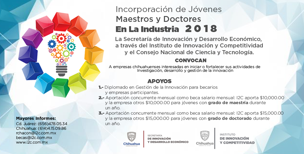 Incorporación de Doctores en la Industria para implementar Proyectos de I+D+i que incremente la competitividad de las Empresas participantes Este instrumento de cofinanciamiento para la incorporación de Profesionistas con grado…