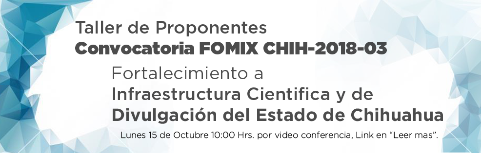 Fondo Mixto CONACYT – Gobierno del Estado de Chihuahua Convocatorias 2018 2018-01 FOMIX CHIHUAHUA CONVOCATORIA 2018-02 FOMIX CHIHUAHUA CONVOCATORIA 2018-03 FOMIX CHIHUAHUA CONVOCATORIA 2019 Click edit button to change this…